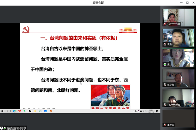 4月12日下午,信息工程系党支部依托腾讯会议平台开展了线上政治理论学习,本次学习的主题是“坚持‘一国两制’,推进祖国统一”。支部书记吴伟萍主持会议,支部全体党员及普通教职工参加学习。