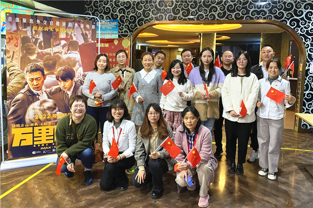 影片《万里归途》由真人真事改编,情节惊心动魄而又感人至深。在努米亚共和国爆发战乱期间,中国政府积极安排组织撤侨的大背景下,外交官宗大伟与外交部新人成朗进入战区、穿越战火、跋涉沙漠、克服万难,带领同胞走出一条回家之路。影片不仅彰显了伟大祖国对人民、对同胞的关怀与保护,对生命的敬畏与珍重,而且更体现出外交人员不畏艰险,舍小家为大家的家国情怀。观影过程中,一帧帧感人的画面将大家的思绪带到那个战火纷飞的动荡国家,外交官与同胞在异域绝境中与大使馆失联,上百人徒步穿越沙漠战火,与反叛军斗智斗勇,危机不断浮现,每一个同胞表现出的对回家的渴望,让人感同身受。