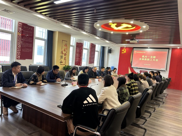 3月29日上午,机关一支部在育德楼313会议室召开全体教职工大会,就吴恩百同志的任职决定进行宣布。本次会议由机关一支部副书记高水冕主持,学校党委副书记、副校长赵学洪出席本次会议。