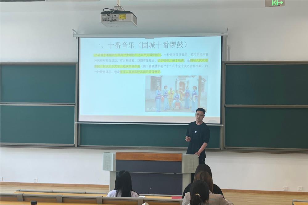 随后,于老师深入分析了非物质文化遗产保护与发展的意义,以及国内外非物质文化遗产保护的经验。他强调,文化遗产是一个民族、一个地区历史文化的宝贵财富,是一个国家、一个地区珍贵的无形资源,也是人类共有的精神财富。文化遗产,不是一个地方的文明史,而是一个国家、民族和集体的精神标识。要让文化遗产走向世界,让非物质文化遗产走进生活,让文化多元得到更好地传承和发展!