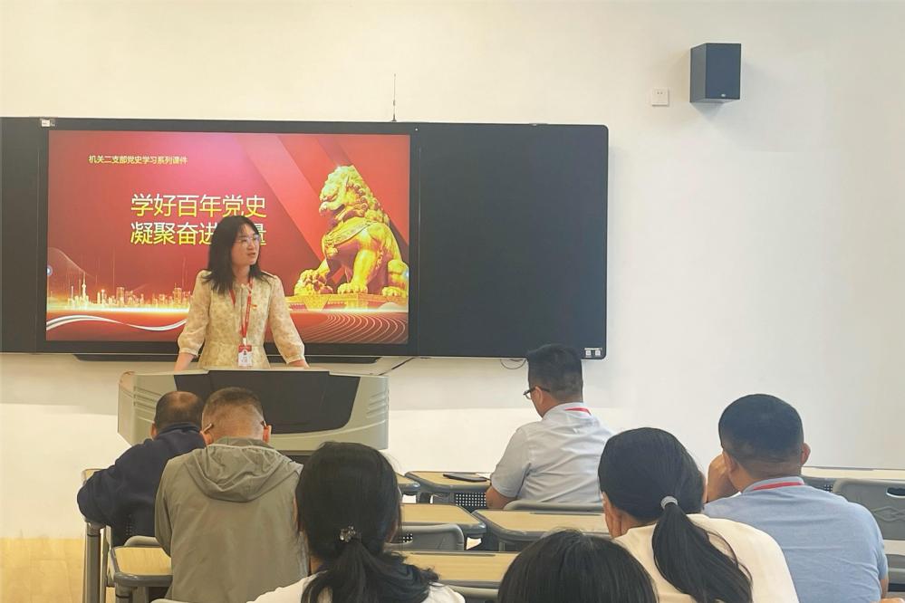 在活动中,机关二支部书记张宝中带领支部老师回顾党的百年历史历程,深入学习党的发展史。对一些重要历史事件和人物进行深入剖析,使党员们对党史有了更系统、更全面地认识。大家认真聆听讲解,仔细观看学习资料,深刻感悟中国共产党百年奋斗的光辉历程和伟大成就。