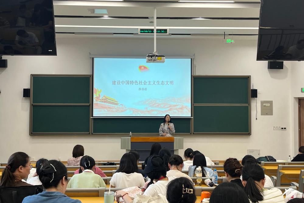 薛蓓蓓围绕着“如何认识中国特色社会主义生态文明”“为何要建设中国特色社会主义生态文明”“如何建设中国特色社会主义生态文明” 等内容带领大家进行深入的学习。她指出,生态文明建设是关系中华民族永续发展的根本大计。建设中国特色社会主义生态文明,不仅是对传统发展模式的深刻反思,更是对未来发展道路的科学谋划。