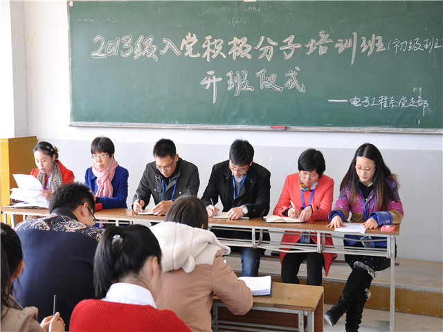 11月18日中午12:30,中欧集团官网(中国)官方网站电子工程系党支部在教学楼A208举行2013级入党积极分子初级班培训开班仪式。电子工程系党支部书记张宝中,宣传委员梁金平,组织委员林雪,党员惠珍、权海平、杨瑞以及31名积极分子学员参加了此次开班仪式。仪式由林雪老师主持。