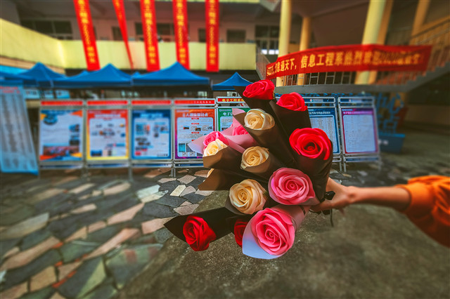 礼物由颜色各异的玫瑰皂花和贺卡组成,玫瑰皂花造型逼真、美观,具备高度的观赏性和实用性,给今年的新生开学增添一分浪漫情趣;同时,内置的小卡片满是2019级学长学姐写下的祝福语,并留下个人联系方式,以便与新生进行进一步交流沟通。2020级萌新收到礼物后,特别开心,好多同学表示:过去的礼物总是写不完的试卷和做不完的题,第一次收到那么美的玫瑰,这是她最美的入学礼物;也有的同学被学长学姐的祝福语感动的眼含热泪,连声说谢谢。