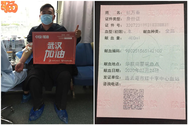当微信上看到江苏血液中心发布血库缺血后,我便第一时间进行了献血预约。这是我的第九次献血,我认为献血只是我生活中很小的事,献出我的爱心,我觉得很有意义。