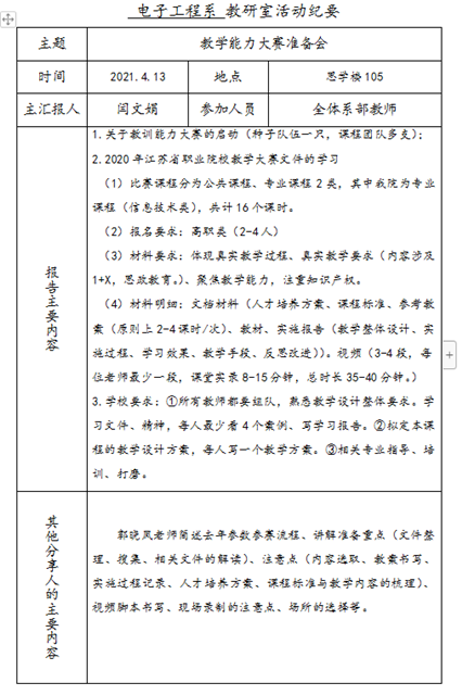电子工程系教研室活动:教学能力大赛准备会