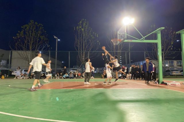 比赛开始前,赛场围满了前来观看的学生们,参加比赛的队员们也热情高涨,跃跃欲试。紧接着,激烈的篮球赛开始了。现场的气氛急剧攀升,比赛的双方很快就进入了角逐的状态。在场的学生们用他们的喊声来表达着自己的情感,为自己的队伍加油。比赛的双方也越来越有激情,用各种各样的篮球技巧和精准的投篮为自己的队伍贡献了一分又一分。各班运动员鼓足干劲,一次又一次的抢夺篮板、投篮,也赢得了同学们的热烈欢呼。每一名队员的“不抛弃,不放弃”精神感染着现场的每一个人。