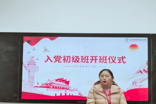 12月7日下午二点半,电子工程系党支部在思学楼307举行了2021年入党积极分子培训班开班仪式。此次开班仪式由电子工程系党支部组织委员李俊娇主持,党支部书记吴伟萍担任特邀嘉宾,39名2020级入党积极分子参加。