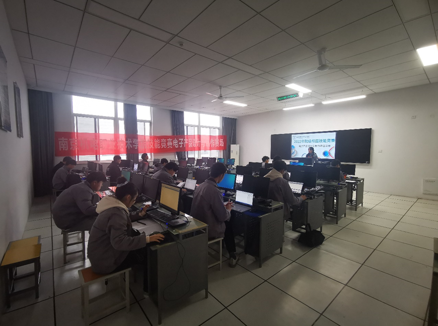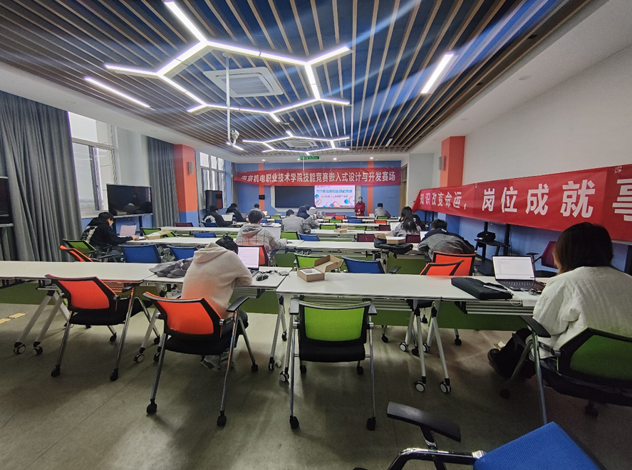 初赛现场,同学们统一着工作服,他们神情专注,认真答题,裁判老师,一丝不苟,公平公正。决赛现场,竞赛氛围更加浓厚,裁判员教师安排的是本次赛项的项目负责人,目的是现场可以解决一些可能出现的技术问题。