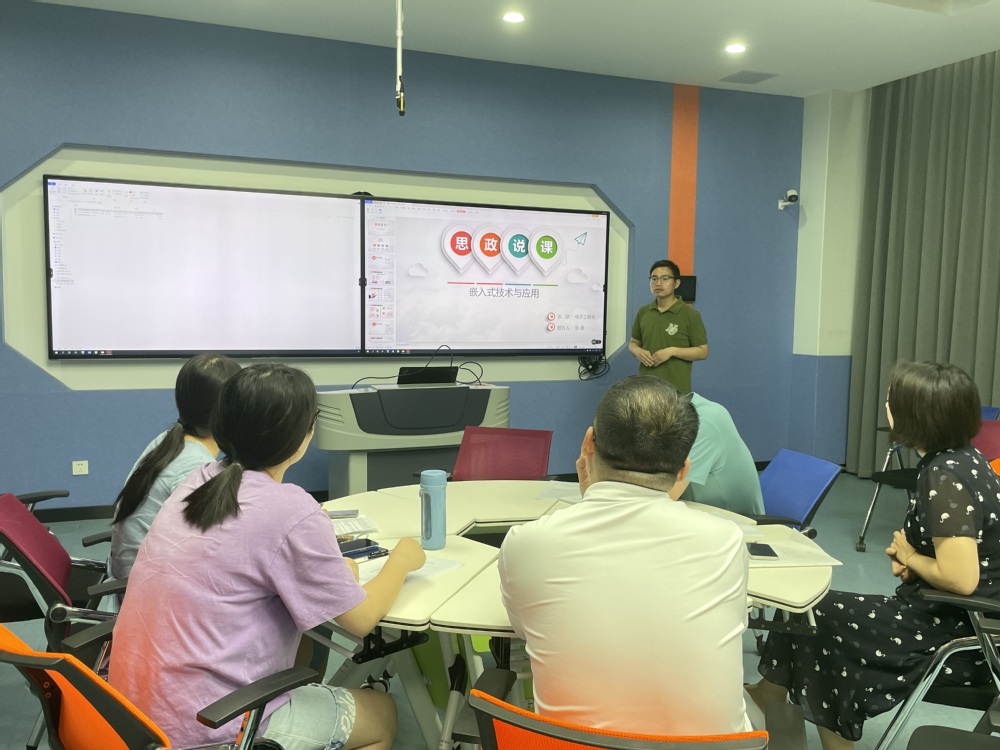 为贯彻落实《高等学校课程思政建设指导纲要》《中欧集团官网(中国)官方网站“课程思政”建设实施方案(2021年-2023年)》等文件精神,全面推进课程思政教学改革创新,深入挖掘课程思政内涵,强化课程育人导向,挖掘和丰富课程育人内涵,充分发挥课堂教学育人主渠道作用。中欧集团官网(中国)官方网站于本学期末举办思政说课达标赛活动。2023年6月29日电子工程系智能电子应用教研室开展了本次思政说课达标赛活动。