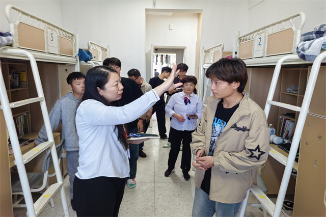 每走进一个寝室,老师们都仔细查看学生卫生情况和安全用电情况,严格把控宿舍“7S”标准,耐心把存在的问题告知学生并叮嘱整改措施。陈书记与学生们亲切交谈,询问学生学习和生活等情况,表示大家有问题及时向系部反应,系部会第一时间帮助大家解决难题。老师们再次提醒学生注意财物安全、用电安全、人身安全,保持宿舍卫生、加强内务整理。