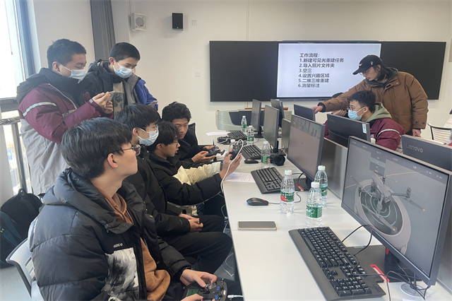 活动开始,由产业学院执行院长(企业代表)-顾启凌发表开营致辞,随后2名无人机教员向同学们介绍了无人机飞手操控,无人机在巡检、环保、公安执法等项目中的应用技能以及无人机在测绘,远程任务,循环作业等软件应用端的职业体验。在了解完相关专业知识后,同学们在教员的指导下开始无人机软件操控,分组模拟飞行。模拟飞行结束后,教员带领学生参观展厅与装调实训室,完成航拍无人机、行业多功能无人机、无人机机场等设备器材的认识与操作了解。