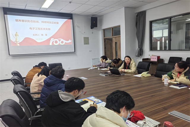 筑牢意识形态防线并持续释放正能量对于维护国家安全、促进社会和谐与进步、统一思想和凝聚共识、引领社会价值观以及提高国家竞争力等方面都具有重大的意义。2024年3月5日下午,电子工程系党支部组织专题政治学习,主题为《筑牢意识形态防线,持续释放正能量》。本次学习由党支部副书记陈雪领学,系部全体人员参加。