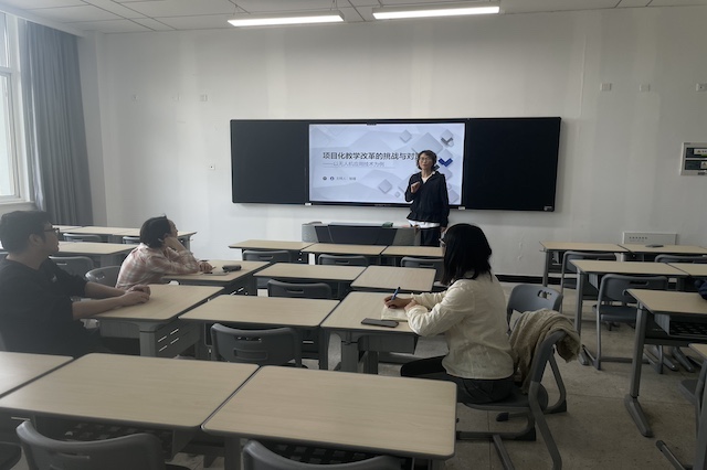 无人机应用技术专业教师郁镭首先介绍了本专业及传统教学模式的特点。作为近年来关注度越来越高的新兴专业,它具有跨学科性、实践性强、创新性强、应用领域广泛等特点,但传统的先理论后实践的教学方法导致学生缺乏学习兴趣,同时实践教学相对单一,这也使学生即使很快学会操作无人机,却在面临应用领域时无所适从;教学内容滞后使学生所学知识与行业实际需求脱节;教学评价方式单一难以全面评估学生的实践能力、创新思维和团队协作精神等方面的素质。接着她结合目前该专业正在进行的项目化改革展示了相关成果,包括项目的选定和设计思路,活页式教材的撰写情况等。最后她列举了目前改革过程中面临的困难和挑战。对以上问题,教研室成员展开了热烈的研讨。