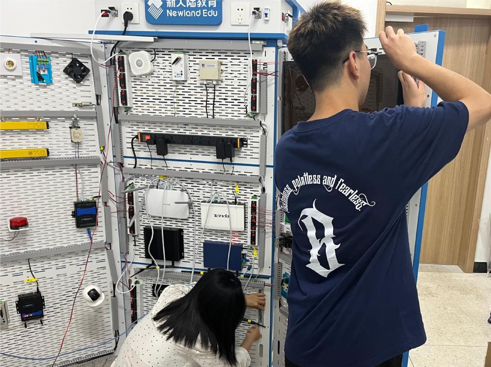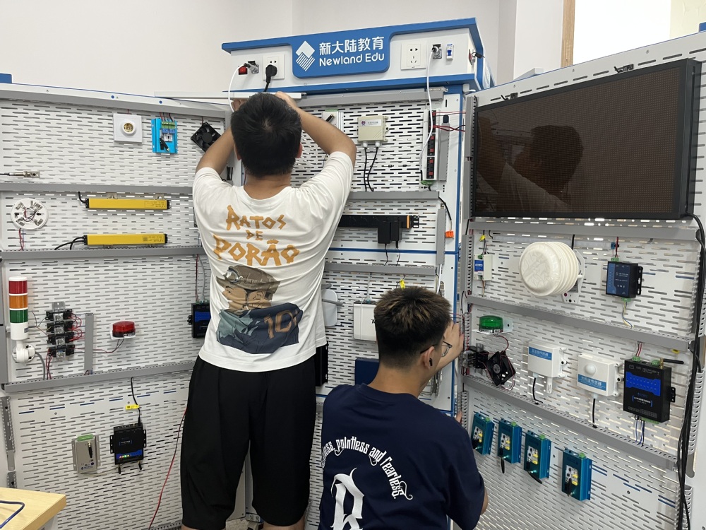 暑假期间,安静怡人的校园里依然充盈着浓厚的学习氛围,为了在2025年江苏省职业院校技能竞赛物联网应用开发赛项中取得优异成绩,电子工程系物联网应用技术专业的参赛老师和学生们利用暑假休息时间,在学校“一站式学生社区”展开了认真而紧张的备赛训练。