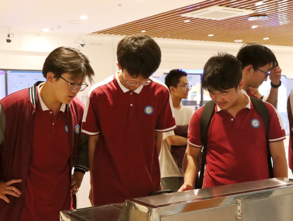 下午13:30,新港中专师生在我校志愿者引导下开启参观之旅。蓝岛创客中心内,候老师带领学生探秘卫星地面接收站实验室与卫星测控中心。通过信号接收模拟装置演示与卫星运行控制互动体验,同学们直观感受“航天级”实践教学场景。当看到我校学生自主设计的卫星火箭模型、3D打印智能设备时,来访师生纷纷驻足拍照,点赞创客教育成果。