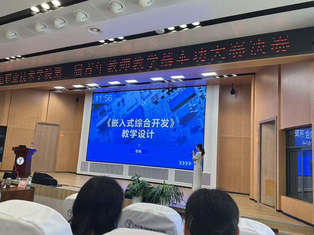 本次大赛聚焦职业教育教学核心能力,吸引了全校各专业领域的青年教师踊跃参与。倪帆老师围绕智能产品开发与应用专业核心课程《嵌入式综合开发》展开教学设计汇报,深度融合行业前沿技术与教学实践,充分展现了课程的创新性、实用性与育人价值。这份荣誉的背后,是倪帆老师及其团队日复一日的精心筹备与不懈努力。从课程内容的反复打磨,到教学方案的不断优化,再到现场汇报的模拟演练,她始终秉持精益求精的态度,深入钻研教学方法,积极探索创新教学模式。