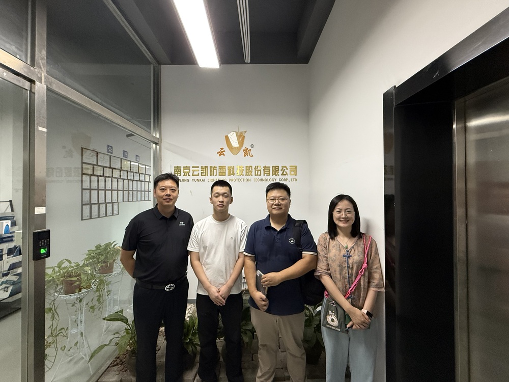 在南京云凯防雷科技股份有限公司,于月东总经理对学校多年来输送的优秀毕业生表示感谢,并详细介绍了近年来实习学生的工作表现。他提到,学校毕业生在企业多个岗位上表现突出,部分已成长为技术骨干。叶绘书记关切地询问了学生的工作环境和生活情况,鼓励同学们珍惜实习机会,将理论知识与实践相结合,为未来职业发展打下坚实基础。