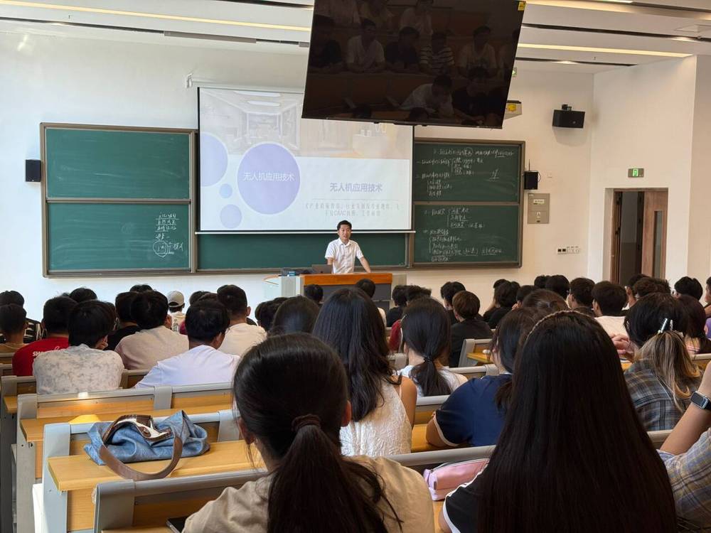 在室内理论环节,陈大伟先生首先围绕国家低空经济发展战略进行了深入解读,阐述了低空经济在物流、测绘、应急、农业等关键领域的广阔应用前景及政策支持导向。他强调,随着空域管理改革的深化与技术创新的突破,无人机行业正迎来前所未有的发展机遇,专业人才需求旺盛。随后,他系统介绍了无人机应用技术专业的现状与发展趋势,包括核心技术框架、职业技能要求及未来的升学就业路径。期间,优秀学长代表分享了在校学习心得与行业实习体验,以亲身经历增强了新生对专业的认同感与学习热情。