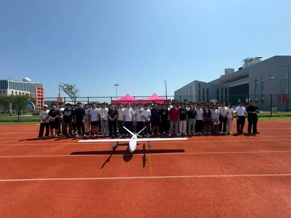 理论环节结束后,活动移至室外场地进行飞行表演环节。江苏威思迈智能科技有限公司的技术团队现场展示了垂直起降无人机与固定翼无人机的飞行操作。无人机稳健的起降、精准的航线规划、流畅的模态转换以及出色的作业模拟能力,引发现场阵阵掌声。新生们得以近距离观察不同构型无人机的性能特点,直观感受科技与实践结合的震撼效果。
