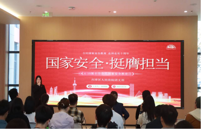 此次普法嘉宾是高淳人民法院综合办刑庭支部团支部书记、综合办二级主任科员孙国娟。孙国娟用通俗易懂的语言,结合真实案例,深入浅出地阐述了国家安全的重要性以及普通公民在维护国家安全中的责任与义务。她从政治安全、国土安全、军事安全等多个领域展开讲解,让师生们深刻认识到国家安全与每个人息息相关,增强了大家维护国家安全的责任感和使命感。讲座内容丰富详实,案例生动鲜活,赢得了现场师生的阵阵掌声。