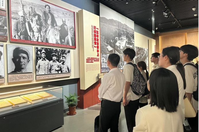 在讲解员带领下,同学们依次参观了“战前形势”“战役准备”“突破江防”等六个展厅,感受“百万雄师过大江”的波澜壮阔和“天翻地覆慨而慷”的激情豪迈。看到展示厅里陈列的锈迹斑斑的枪支、破损的军用水壶时,同学们都不禁感叹:“这些实物比课本更让人震撼。”
