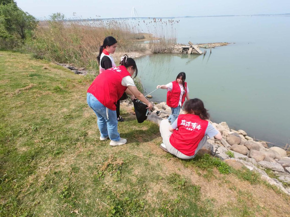 活动首站,志愿者们齐聚蒋山码头,手持垃圾夹与垃圾袋,分组沿固城湖滩涂展开净滩行动。废旧渔网、塑料瓶、泡沫碎屑、烟头……志愿者们细致清理每一处垃圾,同时向周边居民科普水域保护对生态平衡的重要性。“守护母亲河”的呼吁随湖风传递,化作点滴行动中的责任与担当。