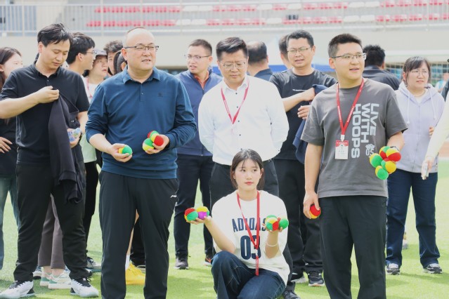 “精准投喂——果园采摘大作战”则充满趣味,参赛师生密切配合,站在指定区域外的队友专注地将“水果”投向背篓,负责接球的队友全神贯注,努力接住每一个“水果”,在提升专注力与耐心的同时,也增强了团队间的信任。