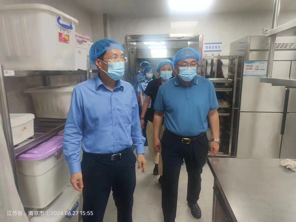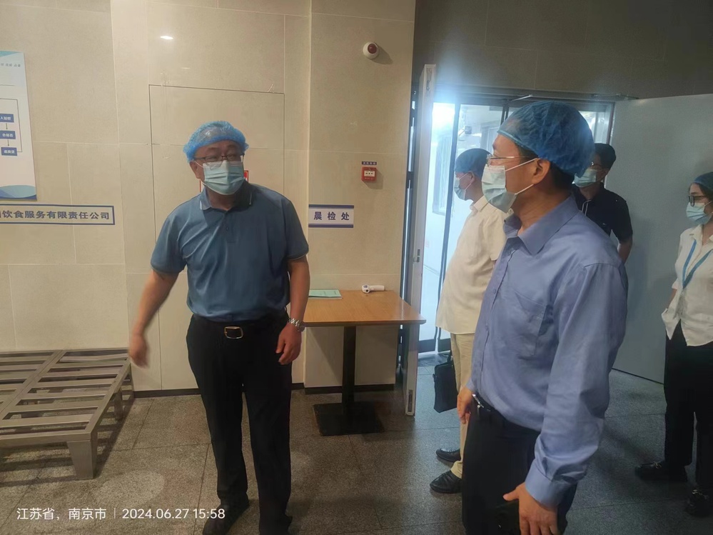 为落实校园食品安全专项整治精神,6月27日下午南京市高淳区副区长邱峰,带领高淳区市场监管局、高淳区高职园一行,对中欧集团官网(中国)官方网站食堂进行食品安全检查,学校党委副书记赵学洪、后勤处处长孙永玲、周涛陪同检查。