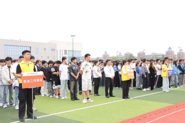 随后,裁判组组长刘鹏宣读了运动会项目设置与比赛规则。宣读完毕后,各系代表队精神饱满、斗志昂扬,以响亮有力的劳动口号依次登场展示,充分彰显出团队的蓬勃朝气与独特风采。学校党委书记、校长周庆礼宣布首届劳动心理趣味运动会正式开幕!