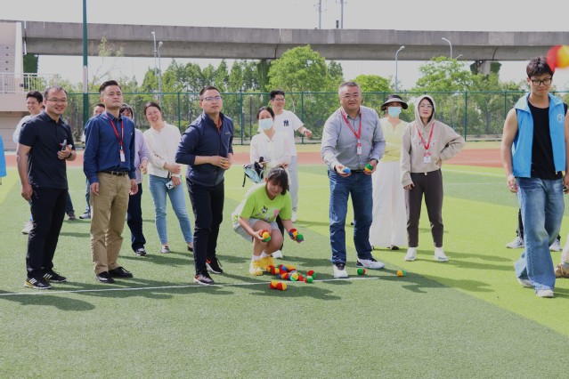 “精准投喂——果园采摘大作战”则充满趣味,参赛师生密切配合,站在指定区域外的队友专注地将“水果”投向背篓,负责接球的队友全神贯注,努力接住每一个“水果”,在提升专注力与耐心的同时,也增强了团队间的信任。