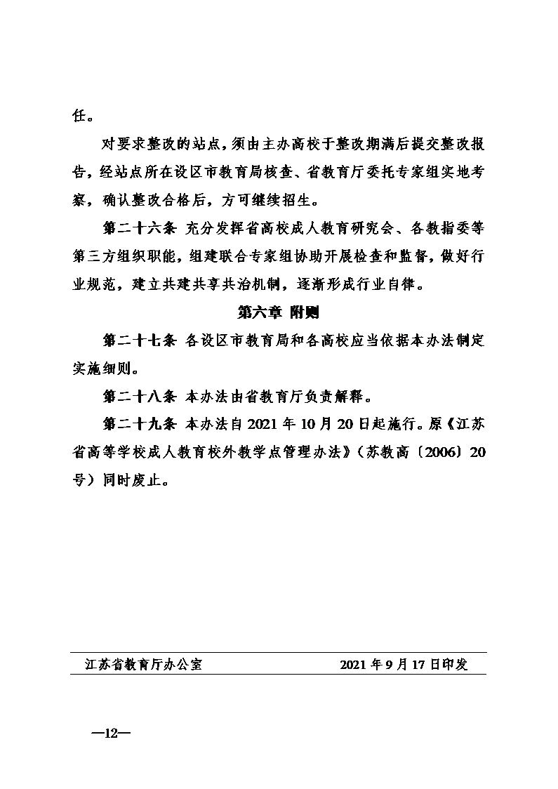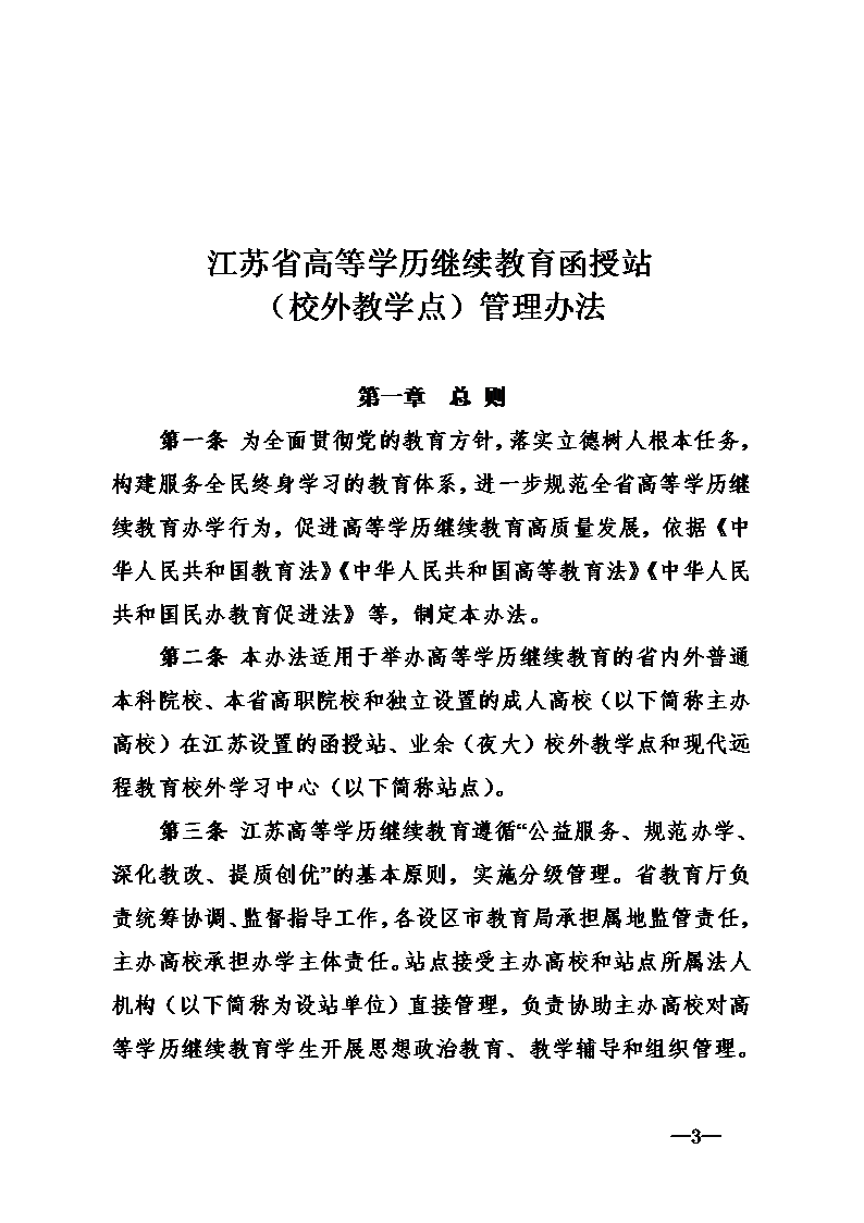 江苏省高等学历继续教育函授站(校外教学点)管理办法