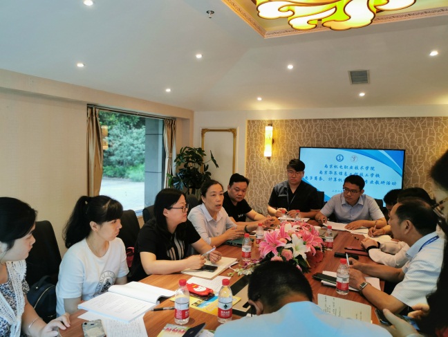 交流会上,南京华东信息工程技工学校张校长表示两校的良好互动、联系、合作为专业建设、课程建设的发展夯实了基础。佟主任介绍了机械工程系的专业设置、招生就业以及对中高职衔接的思考和建议,并表示两校在专业上寻求深度合作有助于明晰人才培养目标、创新课程体系和教材、拓宽人才成长途径。随后,工业设计专业卢彬老师、陈肖老师和南京华东信息工程技工学校机电一体化专业黄老师讨论了2020级机电一体化专业(3+3)人才培养方案的实施,特别是对于培养目标的确定、课程重心内容的把握、教学实施衔接和相关专业教师的沟通等问题上进行了广泛而富有成效的交流,并最终达成共识。