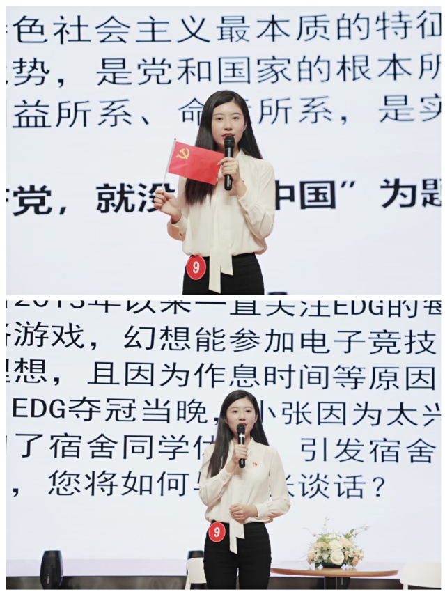 参赛辅导员通过抽签方式抽题,分别需要进行理论宣讲、谈心谈话两项比赛。理论宣讲主题明确,语言流畅,慷慨激昂,彰显了我校辅导员队伍的高度责任感和使命感;谈心谈话环节各位老师准备充分,反应机敏,思维缜密。经过激烈角逐,我系辅导员王晨歌老师荣获第一名,沈婷婷老师、王潇然老师和朱倩老师分别获得了优胜奖。