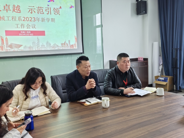 2月17日上午9:30,机械工程系召开新学期工作会议,机械工程系主任范世祥、党支部书记李杰、副主任黄晓萍和全体教职工参加会议。会议由李杰书记主持。