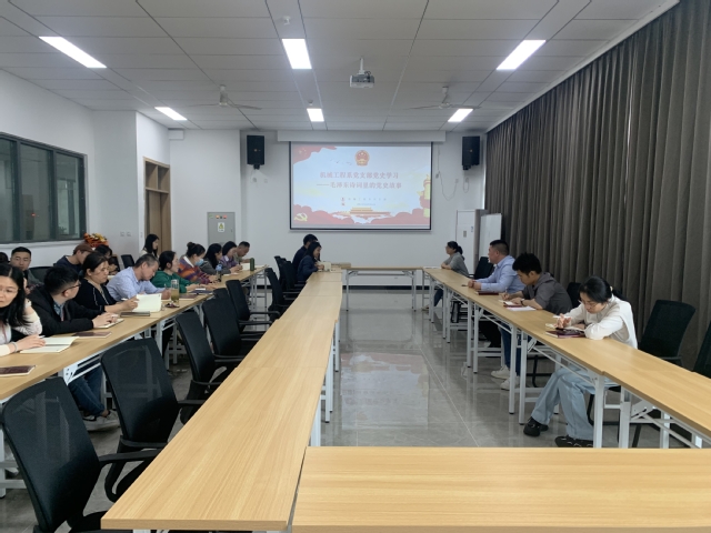 在中国共产党领导的革命斗争时期,革命者常以笔为犁,用诗词记录伟大的理想信念、革命实践与战斗情怀。为进一步坚定理想信念,深入感悟革命斗争下昂扬的浪漫主义激情和英雄主义气概,增强民族文化自觉与自信,4月16日下午,机械工程系党支部邀请了思政中心教师陈璐璐给全体党员开展“毛主席诗词里的党史故事”学习活动。