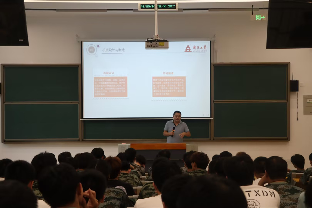 为了帮助机械设计与制造专业新生快速了解本专业的学习任务、明确学习目标、明确就业方向,2024年9月10日下午,机械设计与制造教研室在勤学楼105教室召开了新生专业介绍会,本次会议邀请了南京工艺装备有限公司设备部部长彭朝胜主讲。