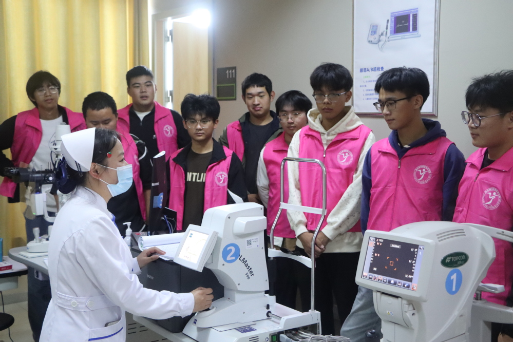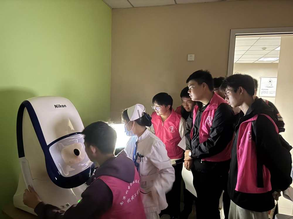 随后,同学们亲身体验了各种高精密检查仪器。通过使用眼压检测仪、视力测试仪等先进设备,同学们更加直观地感受到了现代医疗技术的神奇与精准。在体验过程中,医护人员耐心地为同学们介绍仪器的使用方法和检测目的,让同学们在实践中增长了知识。
