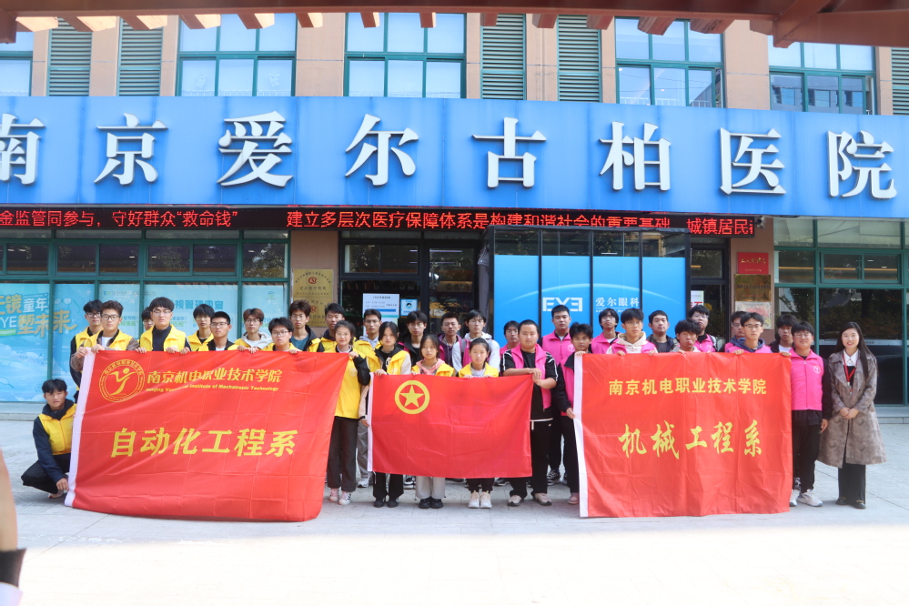 2024年10月25日,在机械工程系团委书记王晨歌的带领下,机械工程系与自动化工程系的志愿者同学们来到南京爱尔古柏医院,开启了一场意义非凡的研学志愿服务之旅。