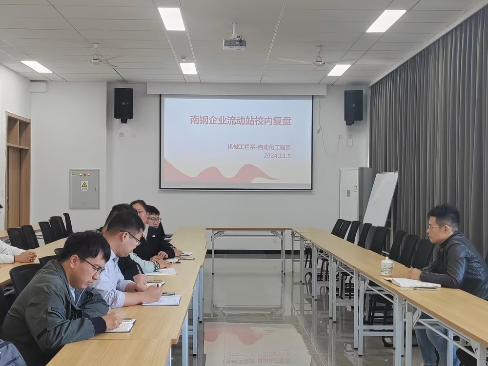 2024年11月5日,南钢教师企业流动站校内复盘活动在机械工程系笃行楼401会议室成功举行,为深化产教融合、推动人才培养与企业需求紧密对接再添新动力。