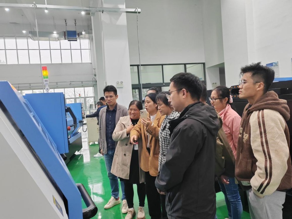 随后,老师们还请李家喜大师点评了学校新进的数控车床,并就数控车床的具体使用请教了一些工厂的情况,并与大师探讨为了让学生更好的适应工厂的实际工作,实训教学还应做出哪些改进。大师也提出了工厂加工的实际情况以及同学们在实习过程中常见的问题。让各位老师受益匪浅,并为接下来的教学工作提出了提升的方向。