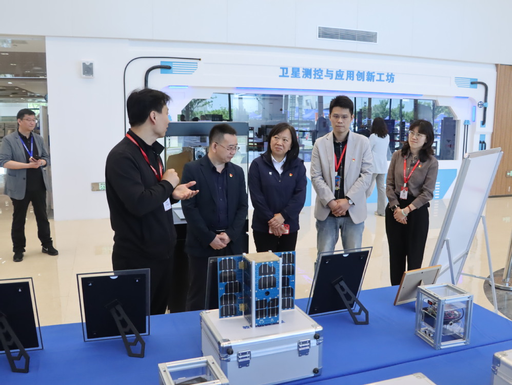 蓝岛创客空间、信息工程系主任王国珍引领党员教师参观了航天教育科普基地、卫星测控中心、非遗工坊,领导老师们详细了解了我校在航天特色教育方面的成果和实力,前来参观的领导及党员教师们对学校的航天教育建设、工匠精神教育给予了高度评价。