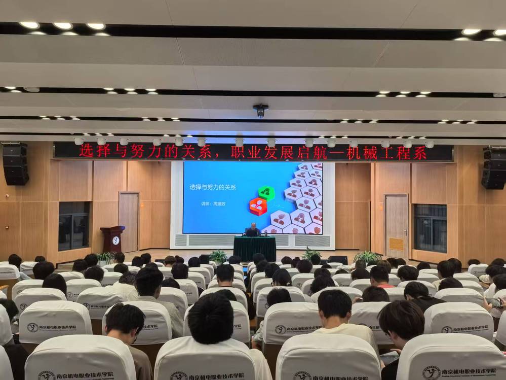 2025年4月23日晚,机械工程系在乐学楼102举办“选择与努力的关系”主题职业规划讲座,300余名师生现场聆听资深职业生涯规划师周建政的实战分享。周老师结合机械工程专业群的学习与就业特点,以“接地气”的行业案例和实用建议,为学生拆解职业规划中的核心问题。