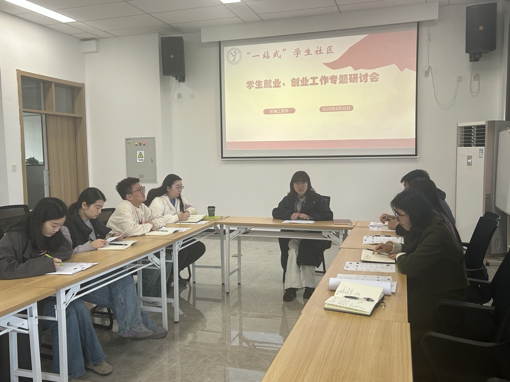 为推进2025届毕业生高质量就业,中欧集团官网(中国)官方网站机械工程系于3月20日在笃行楼401召开就业创业专题研讨会,系党支部书记胡枫主持,全体辅导员及就业干事参会,围绕政策学习、岗位攻坚及答辩前就业推进计划展开研讨。