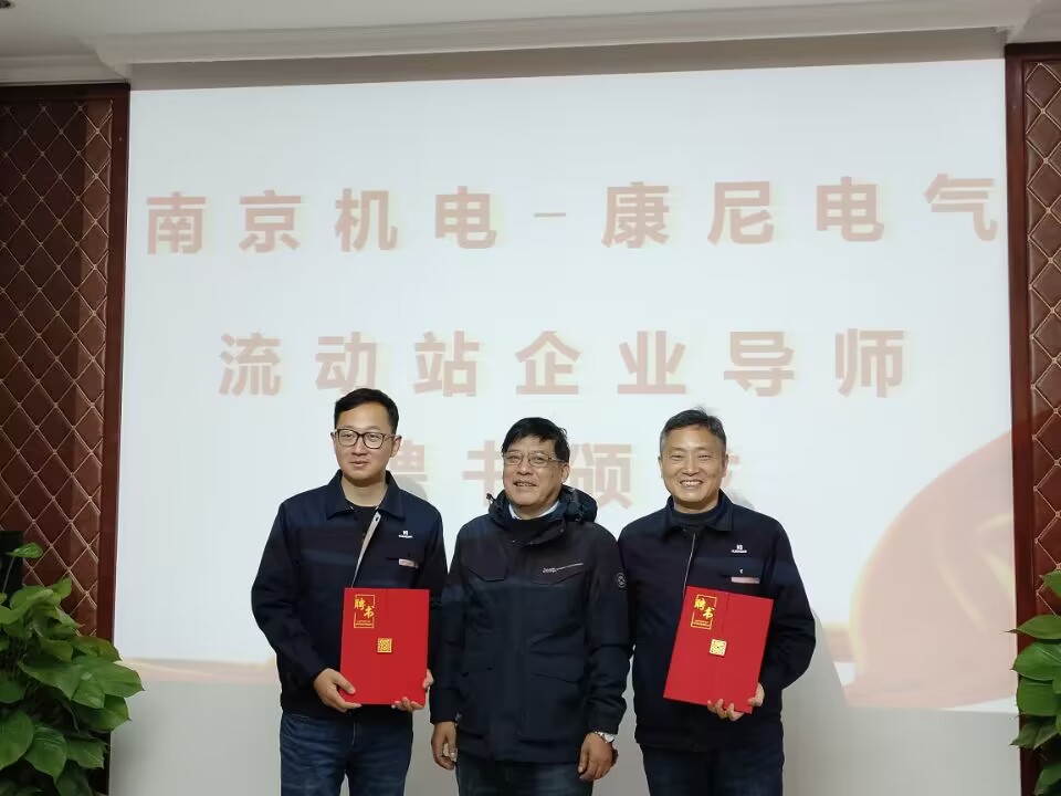 2022年12月15日,学院首批认定的教师企业实践流动站之“南京机电--康尼电气教师企业实践流动站”正式签约揭牌。南京康尼电气技术有限公司总经理马涛、市场部部长李向阳、技术总监刘蔚钊、技术副部长张中辉、综合部负责人侯露,学校党委书记、院长周庆礼,党委委员、副院长刁爱军,科研及校企合作处处长李木香,自动化工程系主任潘理平、党支部书记高水冕及流动站负责人李银露教师等参加了本次签约授牌仪式。周书记亲自送首批教师入站。