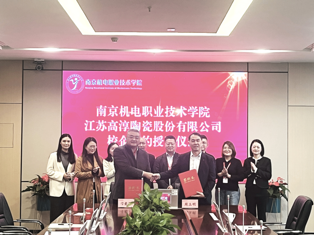 在与会人员的见证下,学校党委委员、副校长刁爱军与江苏高淳陶瓷股份有限公司党委副书记周玉明共同签署了校企合作协议,并进行了授牌仪式。本次签约授牌仪式标志着双方将在人才培养、文化传播、技术创新、社会服务等多个领域展开深入合作。