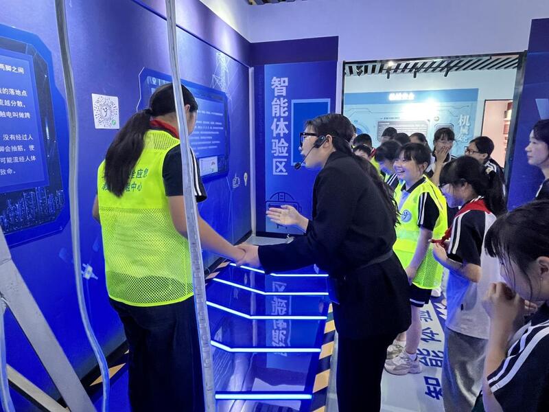 在安全应急教育体验中心,保卫处尹小雨老师带领孩子们体验了消防场景模拟灭火、VR地震体验舱、VR模拟逃生等项目。一名高淳区砖墙中心小学的学生分享了体验感受:“在体验模拟灭火中,我们在身临其境中学会了灭火器的使用方法,我们仿佛就在火灾现场进行灭火作业,让我们增长了应急救援的知识和技能。”