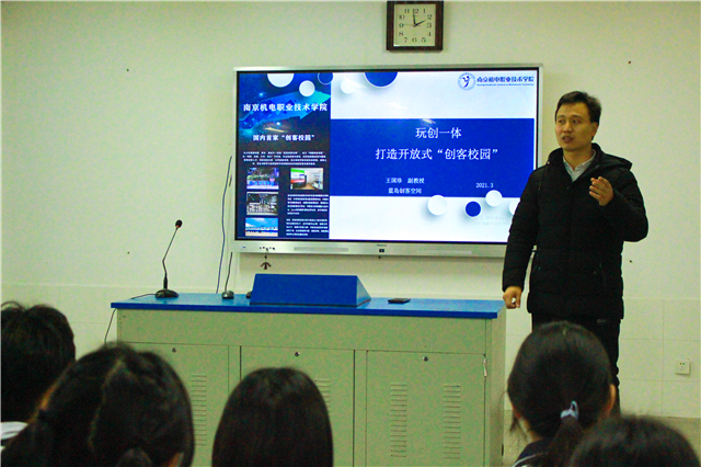 3月17日下午,我校蓝岛创客空间主任王国珍在江苏省高淳中等专业学校开展《玩创一体打造开放式“创客校园”》创客教育讲座。本次讲座由江苏省高淳中等专业学校副校长钱自豪主持,学工处主任夏一鸣以及来自机电3+3和电子3+3的学生和教师参与了本次活动。