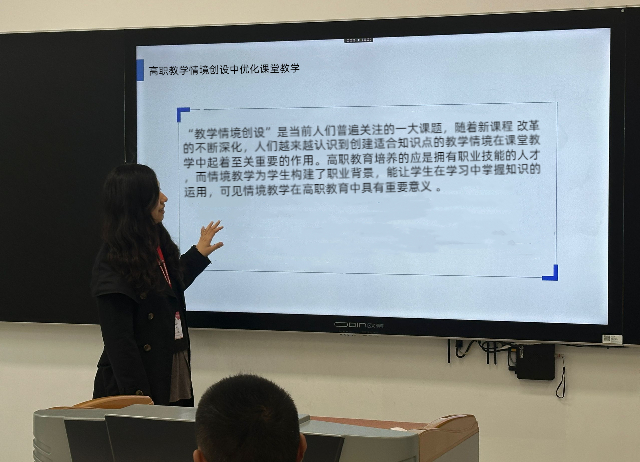 高职教育培养的应是拥有职业技能的人才,而情境教学为学生构建了职业背景,能让学生在学习中掌握知识的运用,由此可见,情景教学在高职教育中具有重要意义。通过本次教研活动,加强了老师们对教学情境创设的认知,相信在未来的教育教学过程中可以更好地使用情境创设法教学,帮助学生更好地把专业知识应用到实际工作中。