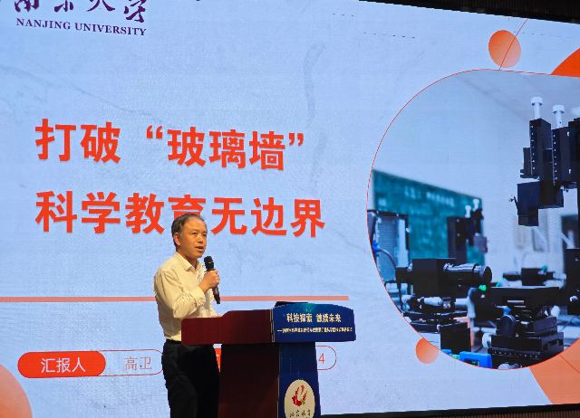 在交流分享环节,来自不同学校和高校的代表们各抒己见。青秀城小学学生代表张意分享了自己在科学探索中的成长故事,展现了青少年对科学的热爱与执着;南师附中仙林学校初中部邢玮书记介绍了学校科创课程的特色与普及化创新实践,为其他学校提供了宝贵经验;南京大学化学化工学院高卫教授则从高校视角出发,分享了南京大学与区内多所学校的合作经验,为校地协同开展科学教育提供了新的思路与方向。